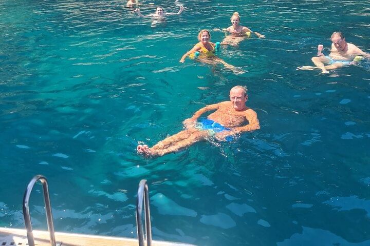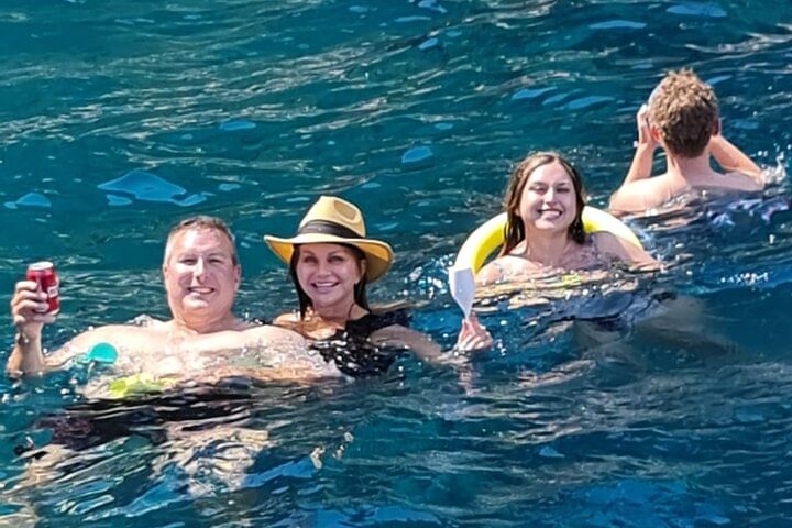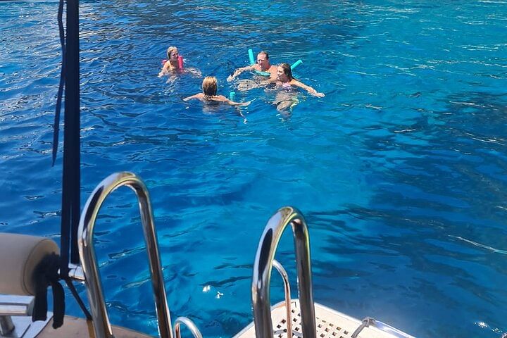 Relax on board, sunbathe or swim in the blue water of the Gulf.