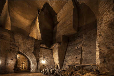 In this guided tour you will discover the secrets that are hidden in the ancient Bourbon Gallery commissioned by Ferdinand II of Bourbon in order to create a military path that would allow the troops to reach the Royal Palace in a short time. The Bourbon Gallery is a long underground tunnel built in the mid-19th century by Ferdinand II of Bourbon and is considered the pride of underground Bourbon civil engineering. Rediscovered in 2005, the gallery offers the public a surprising itinerary in the subsoil and in the history of the Neapolitan city. Through the Standard route it will be possible to appreciate the war refuge, ancient cisterns of the Bolla Aqueduct, fragments of statues, vintage cars and motorcycles found during the safety measures.