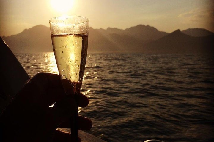 Live the beautiful red Sunset of the Coast while enjoying an aperitif on board