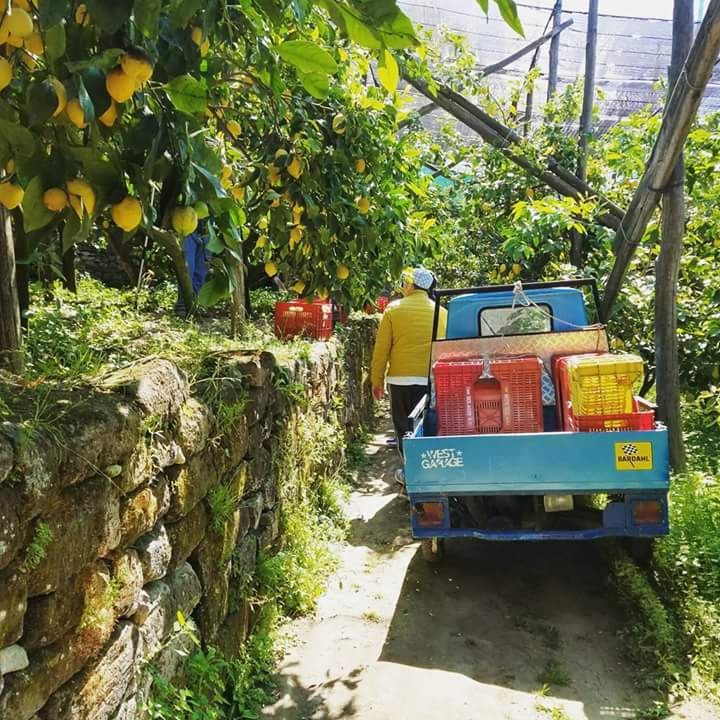 Trasporto nella Fattoria a bordo di Ape Claessino;